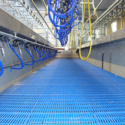 De kunststofroostervloer zorgt er voor dat de melker altijd op een droge plaats staat en die makkelijk te reinigen is en niet koud aanvoelt in de winter